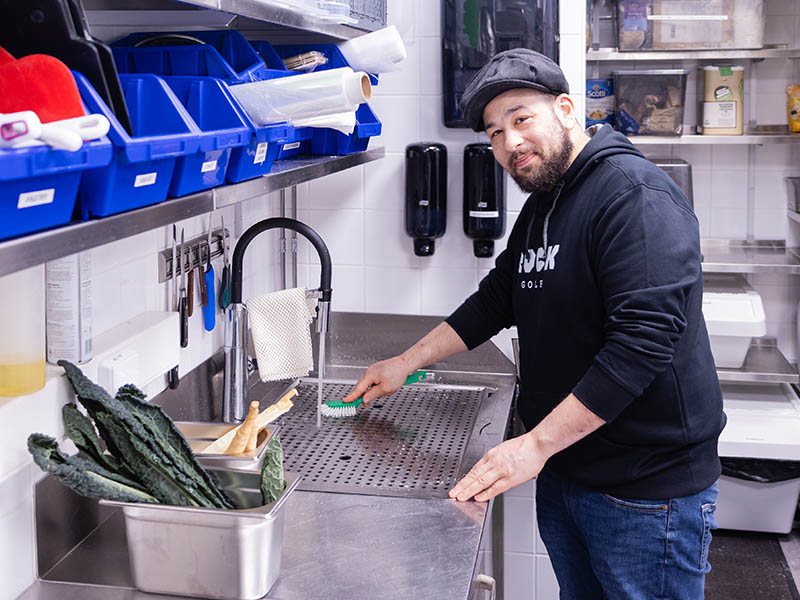 Astioiden pesuun haluttiin myös panostaa, jotta astioiden pinta on varmasti puhdas ja kirkas. Lasit pestään erillisessä luukkukoneessa ja rasvaisemmat lautaset ja keittoastiat hoitaa suuremman kapasiteetiin Solotop STH500 kupukone, jonka tehokkaat 90-120 sekunnin pesuohjelmat puhdistavat myös vaikean lian nopeasti. Astianpesukoneiden oikea mitoitus, niiden sijoittelu keittiössä ja sujuva käyttö tehostavat keittiön työnkulkua ja auttavat ennakoimaan sekä välttämään ruuhkahuippuja. Astianhuollon on toimittava saumattomasti myös sillon, kun koneelta vaaditaan ruuhka-aikoina niiden maksimikapasiteettia.