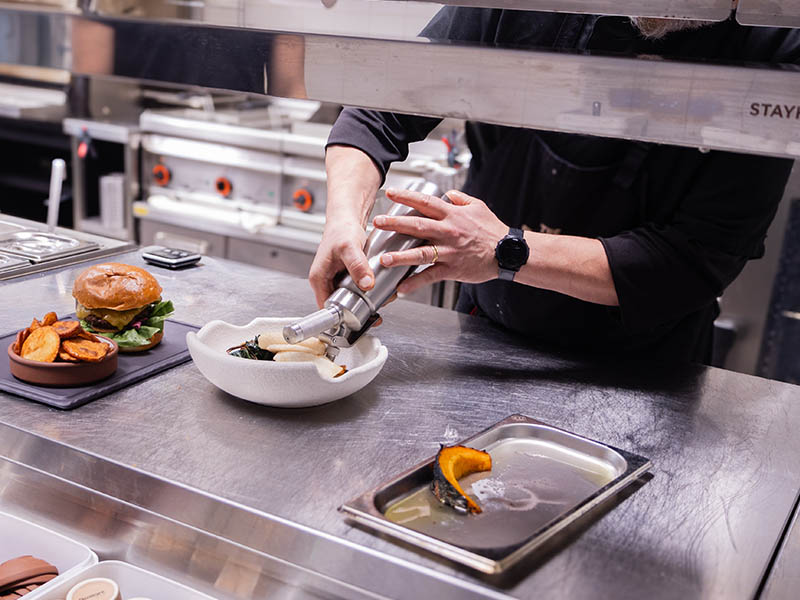 Vesipiste on tuotu liesitason luokse, jolloin isot kattilat on helppo täyttää suoraan liedellä. Näin vältytään isojen ja painavien kattiloiden turhalta siirtelyltä. Myös puuhiiliuunin ylöspäin aukeava lasiluukku lisää turvallisuutta – kuuma luukku avautuu ylöspäin, ei kohti kokkaajaa mahaa. Rockissa on Lainox Naboo Boosted torniuunin lisäksi käytössä Pira 70 Lux ED puuhiiliuuni, jossa on Piran patentoitu PIRACOLD-jäähdytysjärjestelmä. Sen ansiosta uunin ulkopinta pysyy alle 60 °C:n, vaikka sisälämpötila olisi maksimi, mikä vähentää keittiön lämpökuormaa ja säästää hiiltä sekä energiaa erinomaisen lämmönvarauskyvyn ansiosta.